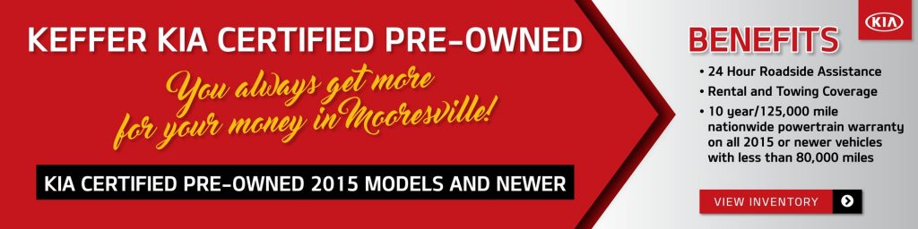 KIA shoppers near Charlotte can view KIA Certified Pre-owned KIA models at Keffer KIA. You will always get more for your money at Keffer with a lot of benefits that come with your a certified pre-owned KIA. Contact Keffer KIA serving Charlotte, North Carolina for more information today.